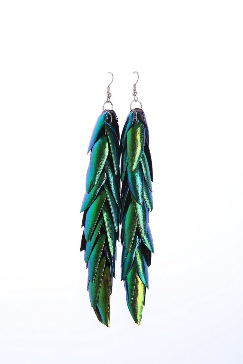 Stunning statement earrings made from sterling silver hooks & elytra beetle wings.