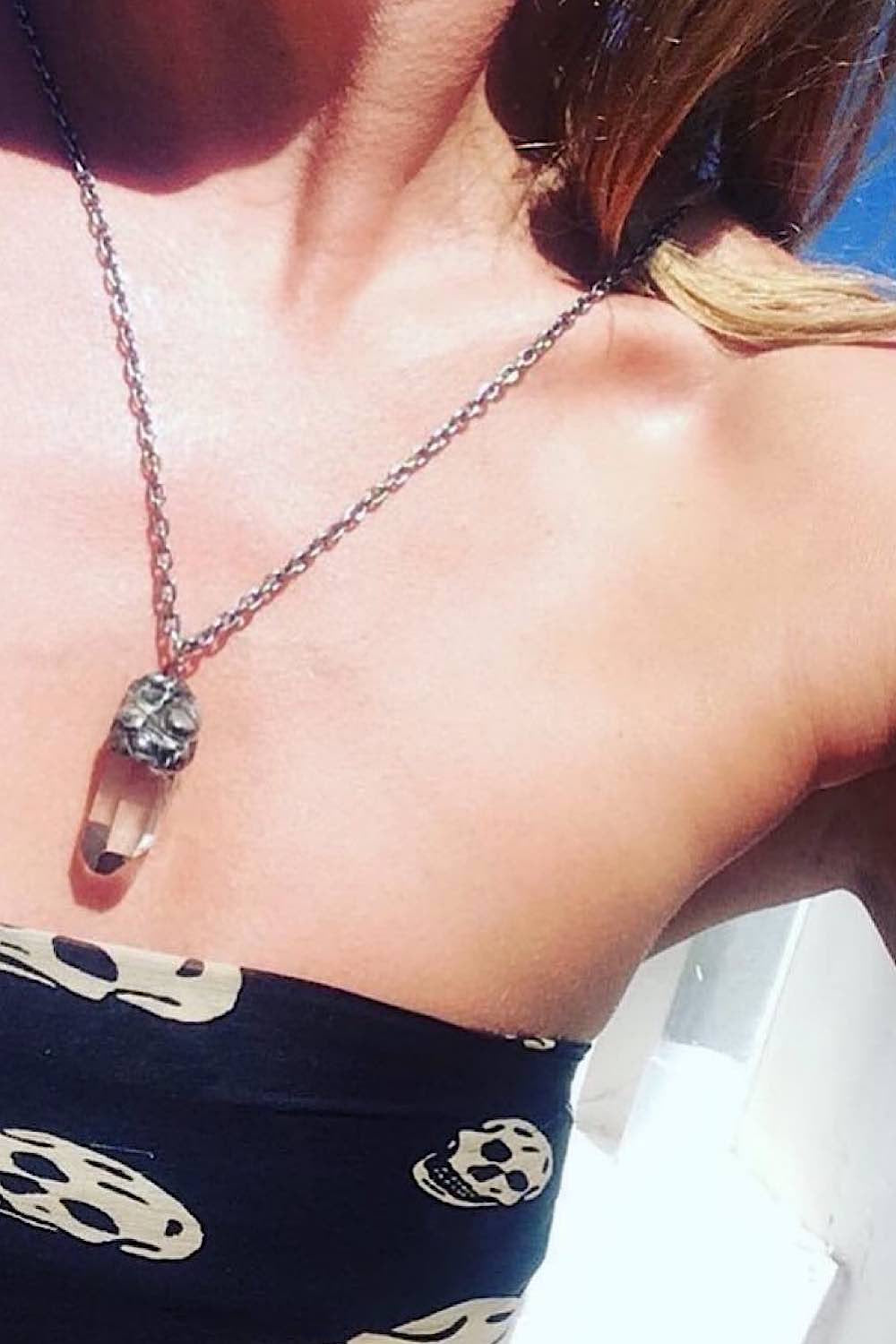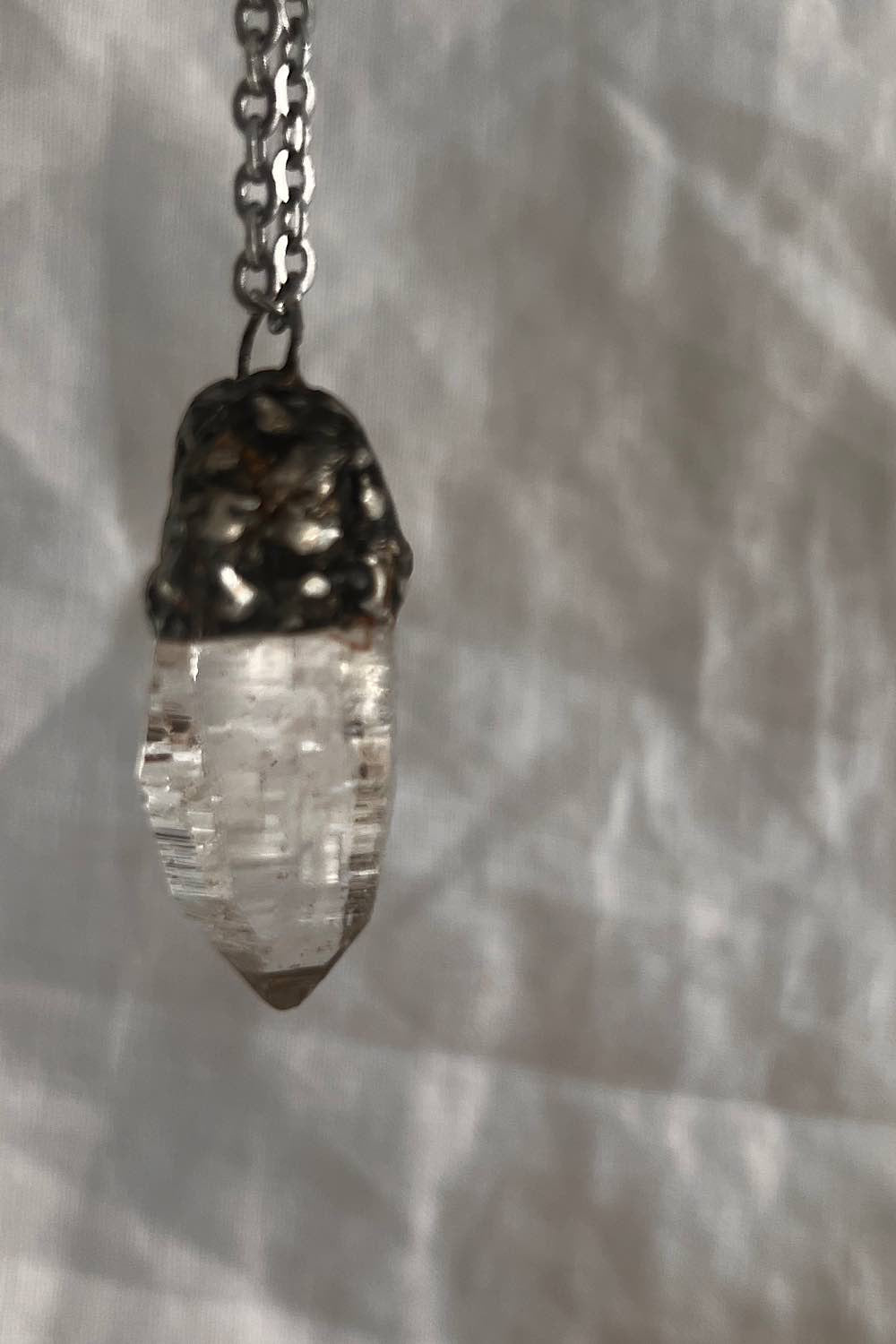 These quartz are in our molten metal setting and hang on stainless steel chain. Chosen at random but similar in size, shape and colour to the stock photos.